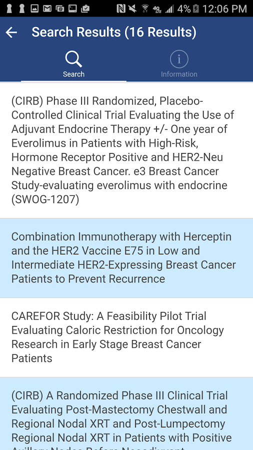 Developed during my internship at Jefferson, the Clinical Trials app (App Store, Google Play) is designed to let doctors quickly find and identify clinical trials.
